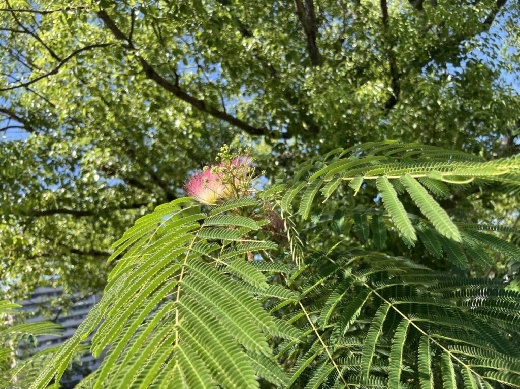 さて、画像は入試説明会の会場近くの鴨川河畔のネムノキが咲き誇っていたので青空を背景に写真を撮ったものである。9月に入ったところでまだまだ残暑が厳しいなかでさわやかな青空に対比するピンクの花の美しさが目にしみた。